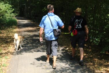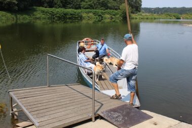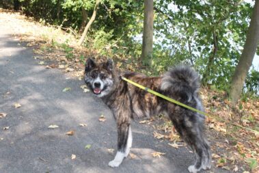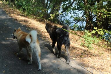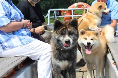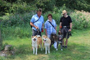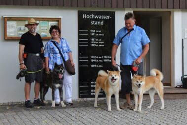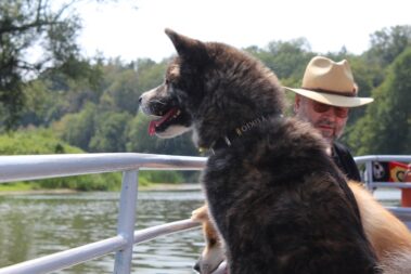 Die Wanderung an der Mulde entlang und auch die Bootsfahrt machte den Akitas mächtigen Spass.
