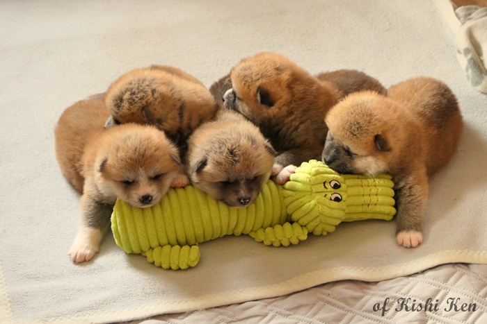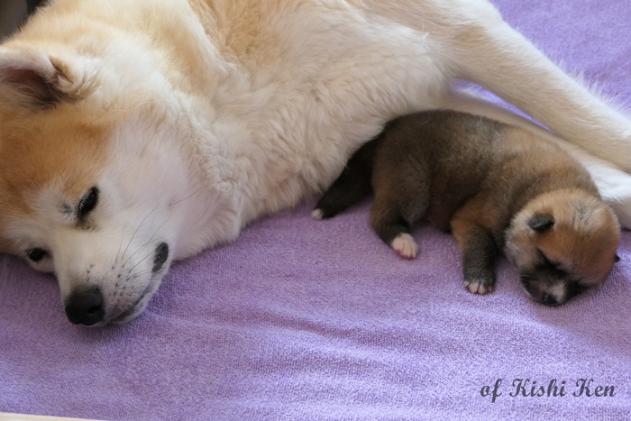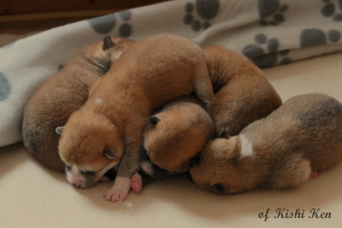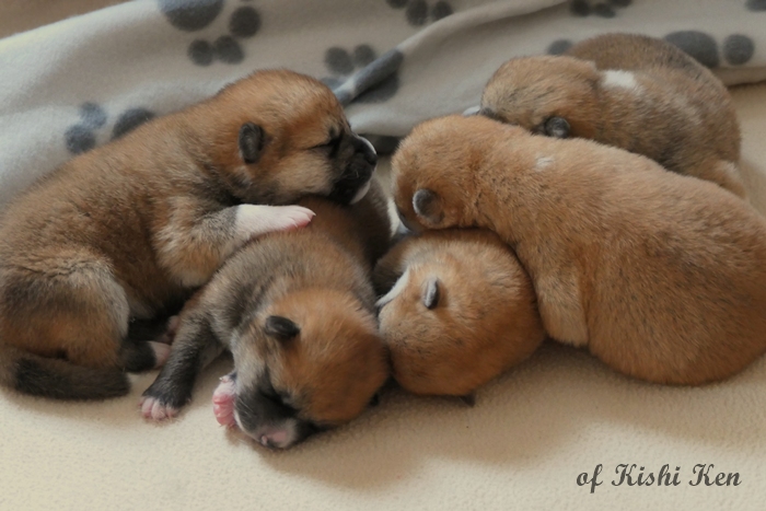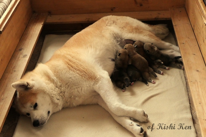 Am 12.03.2026 hat unsere Hündin Kimiko Go Miryoku Kat von unserem Rüden Sachi go Tokimitsu 5 wunderschöne Welpen zur Welt gebracht.