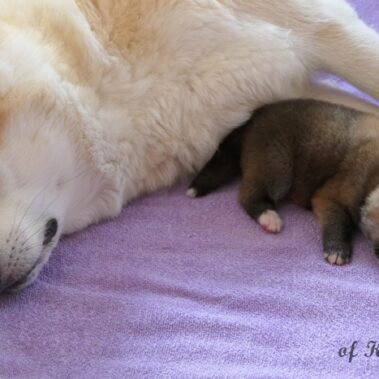In der ersten Lebenswoche passiert noch nicht so viel, die Welpen verbringen die meiste Zeit mit Schlafen und Säugen. Es ist immer wieder ein schöner Anblick die Hündin beim Säugen zu beobachten.